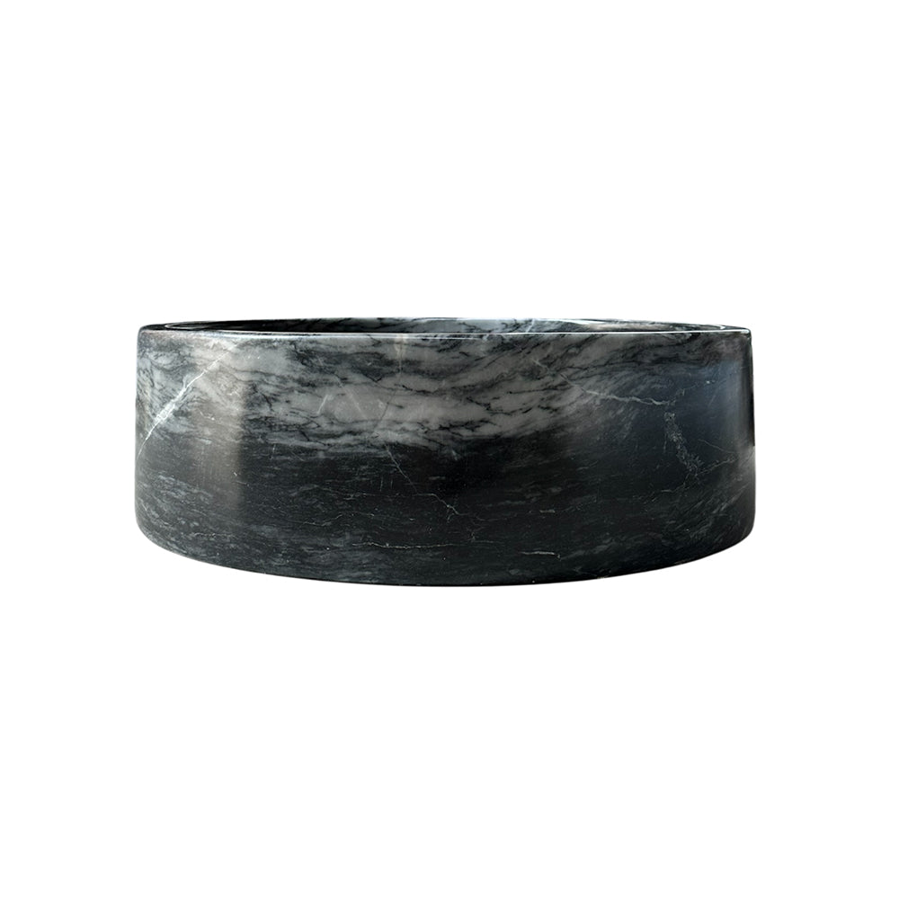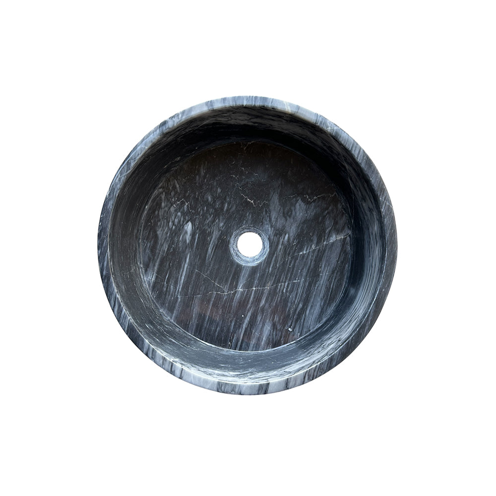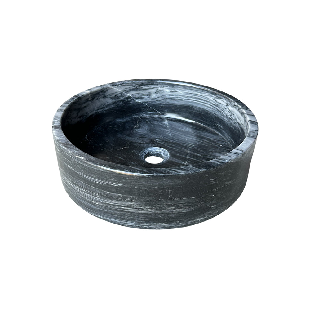 Aporte una sofisticación discreta a su baño con este lavabo redondo de sobremesa en Gris Masahua, un mármol gris ahumado suave con vetas naturales sutiles. Pulido por dentro y por fuera, captura la luz con belleza, creando una pieza central serena y lujosa.