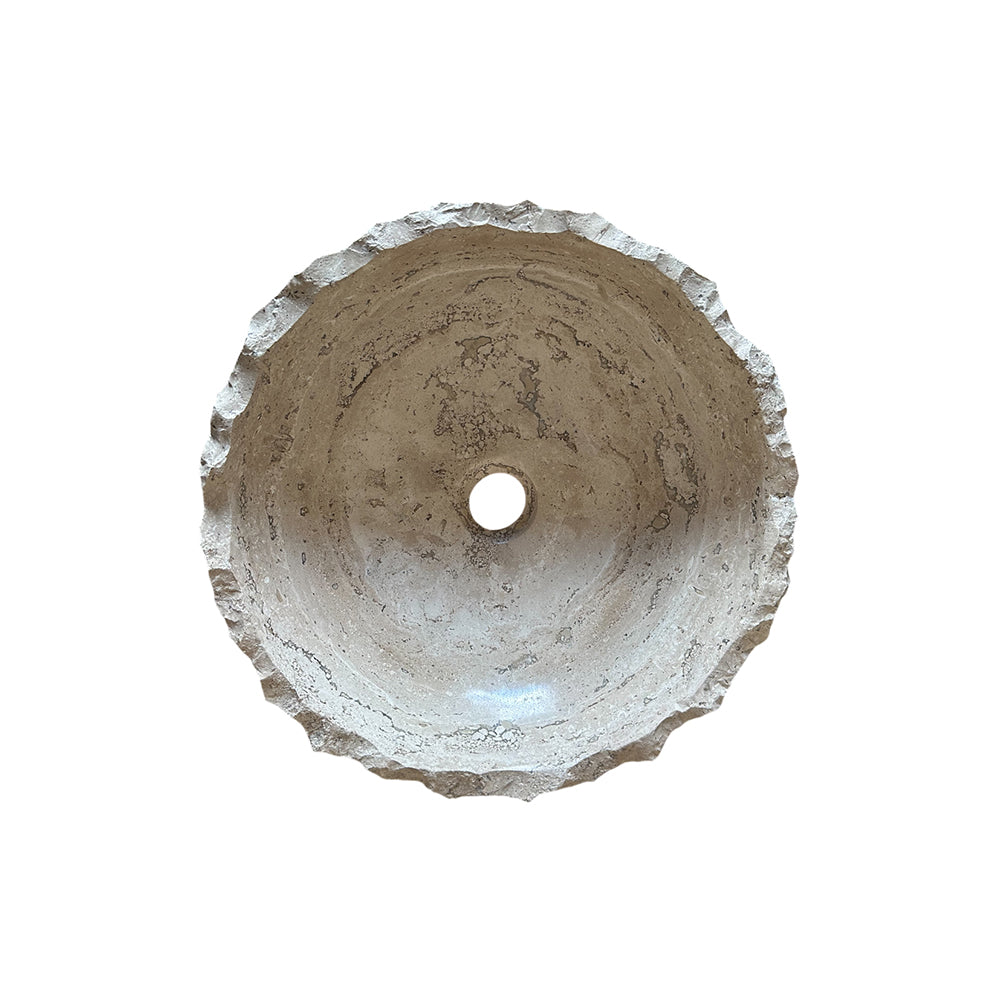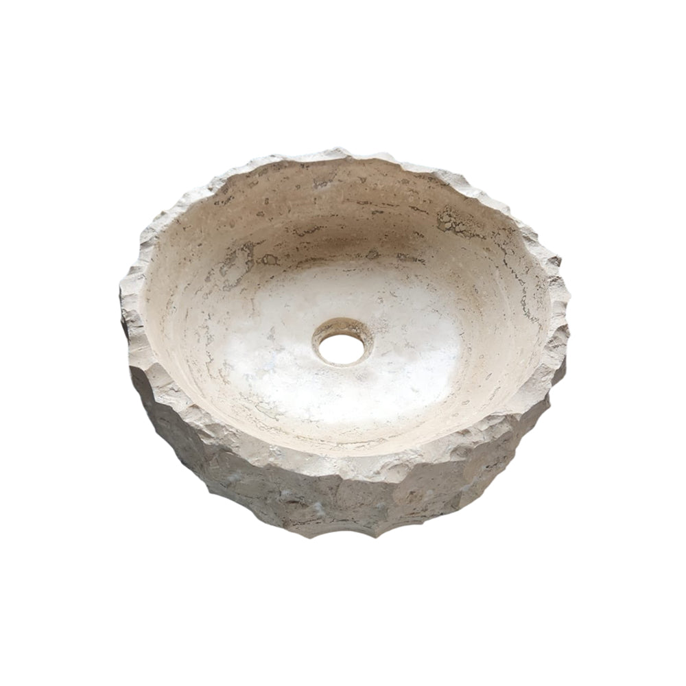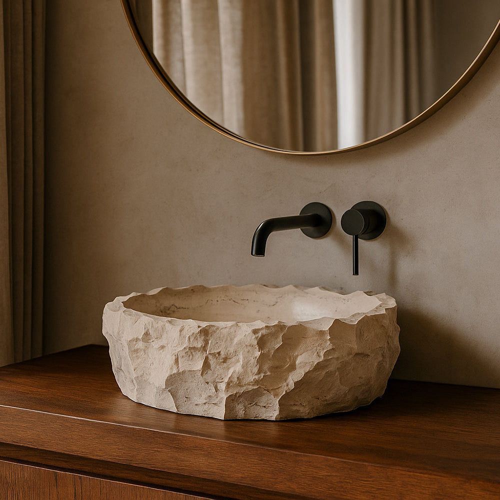 Este lavabo de travertino artesanal está tallado a mano en travertino natural macizo, creando una pieza audaz y orgánica tanto para baños modernos como rústicos. Sin moldes ni producción en fábrica: cada lavabo es verdaderamente único.