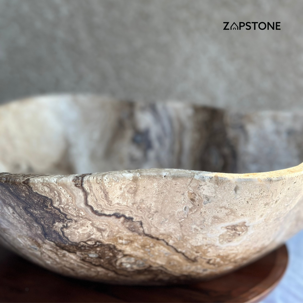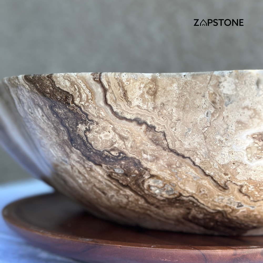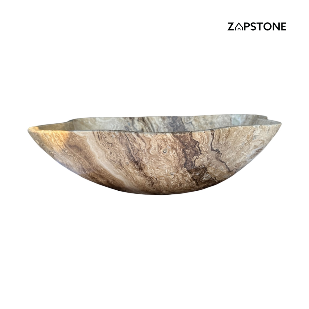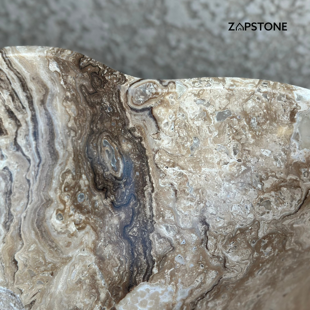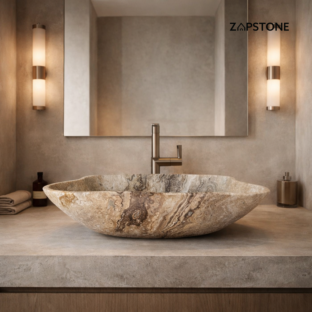 Este lavabo de vasija único está tallado a mano a partir de un único bloque sólido de ónix natural, con vetas espectaculares que no se pueden replicar. Cada superficie realza la belleza natural de la piedra, mientras que el interior está cuidadosamente moldeado para el uso diario.