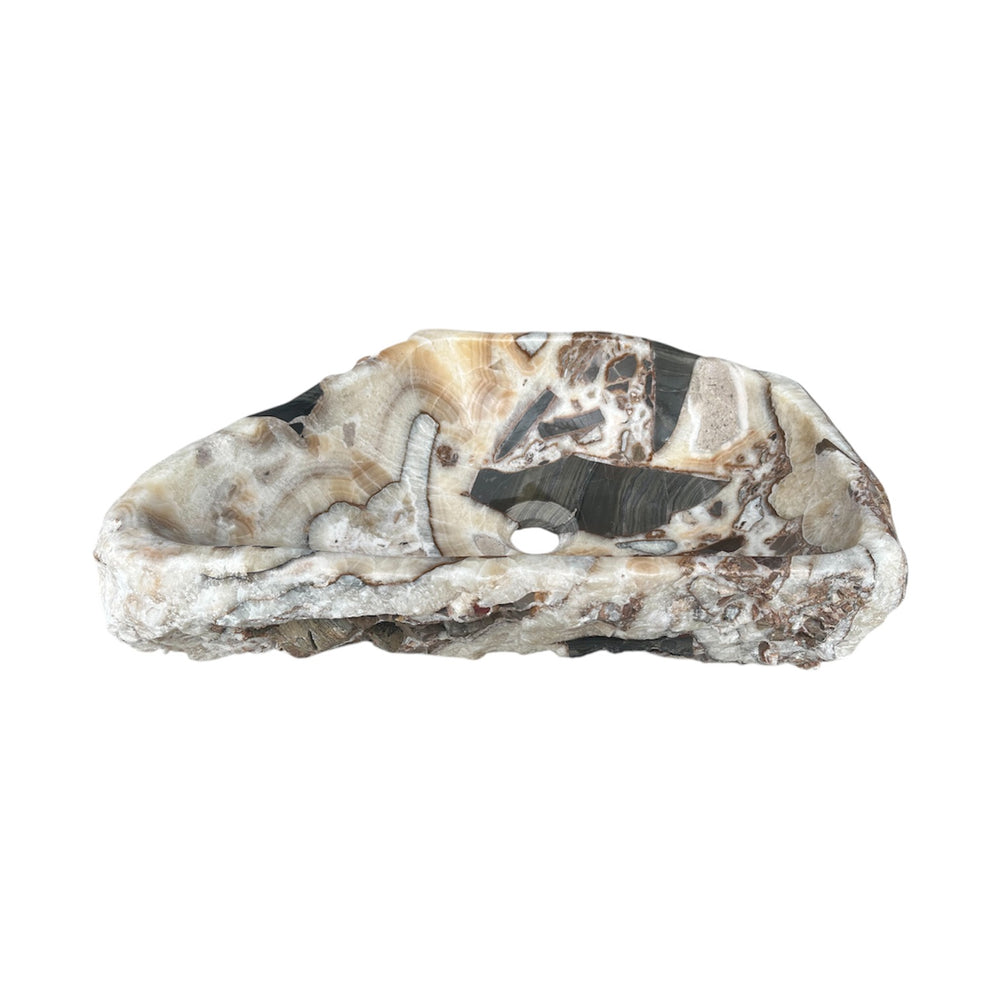 Lleve el lujo orgánico a su espacio con este lavabo de piedra natural único en su tipo, tallado a mano para resaltar la forma natural de la piedra y su carácter único moldeado por el agua a lo largo del tiempo.