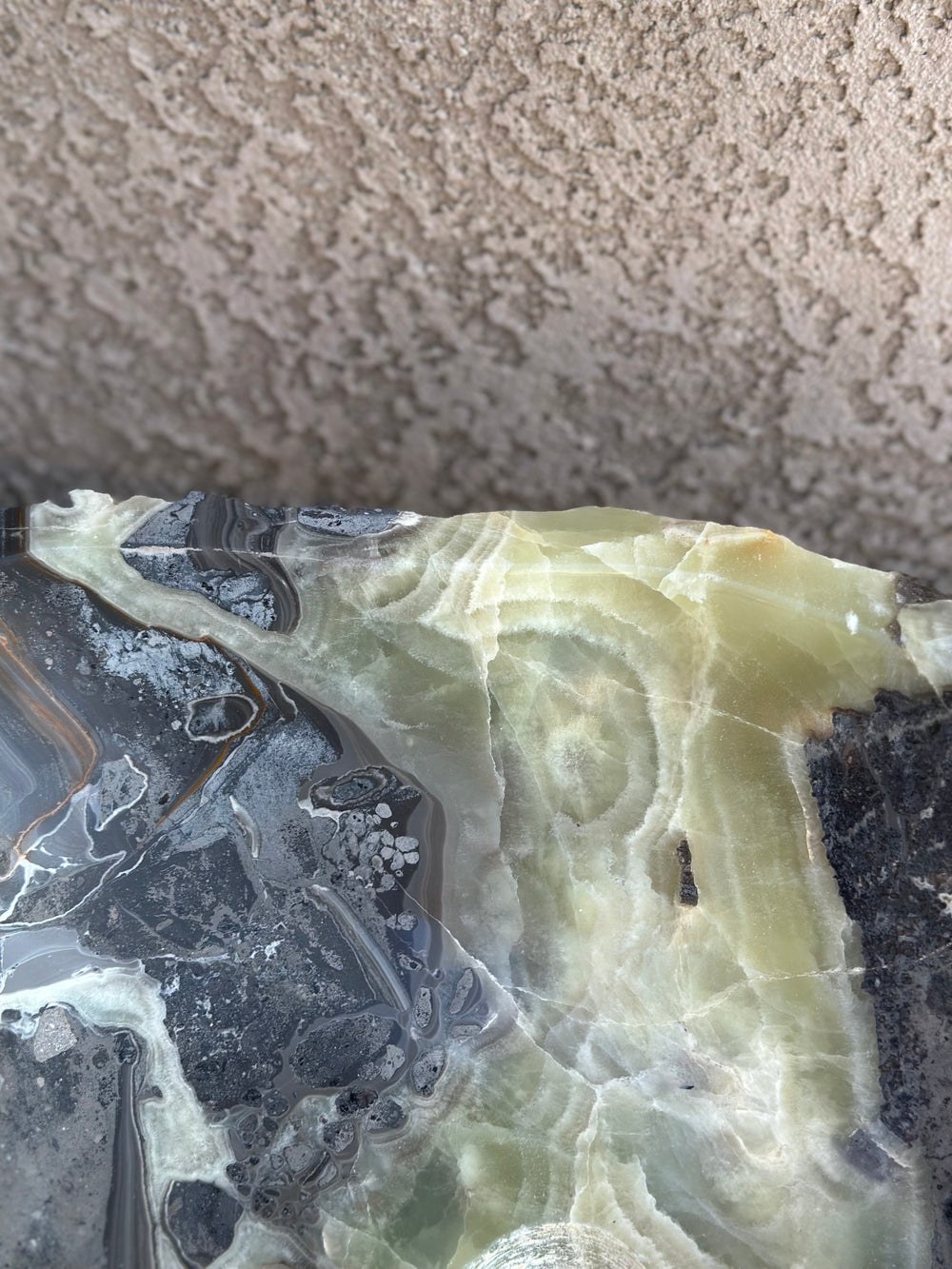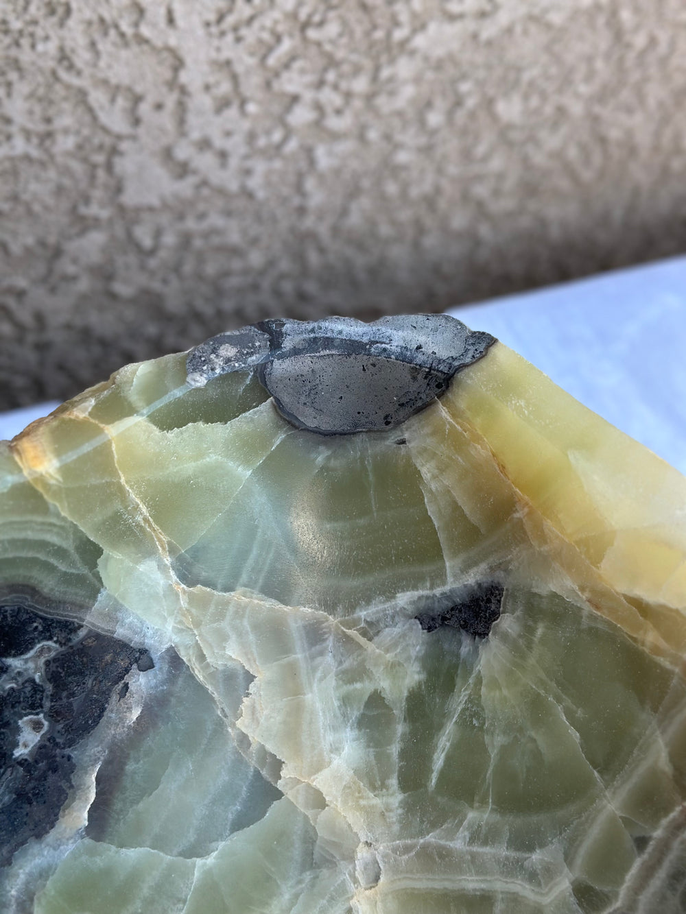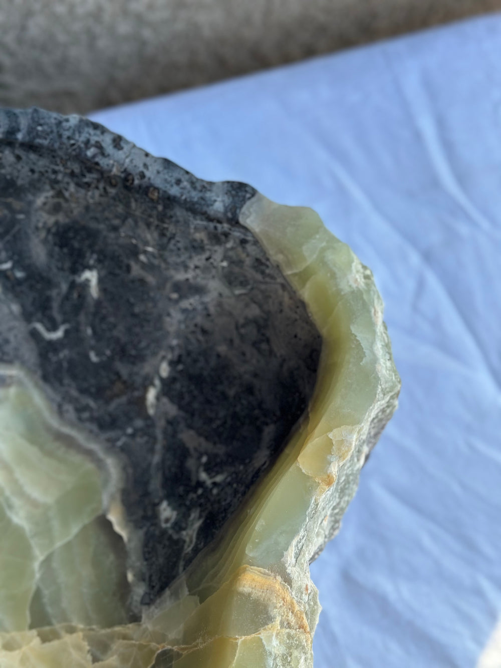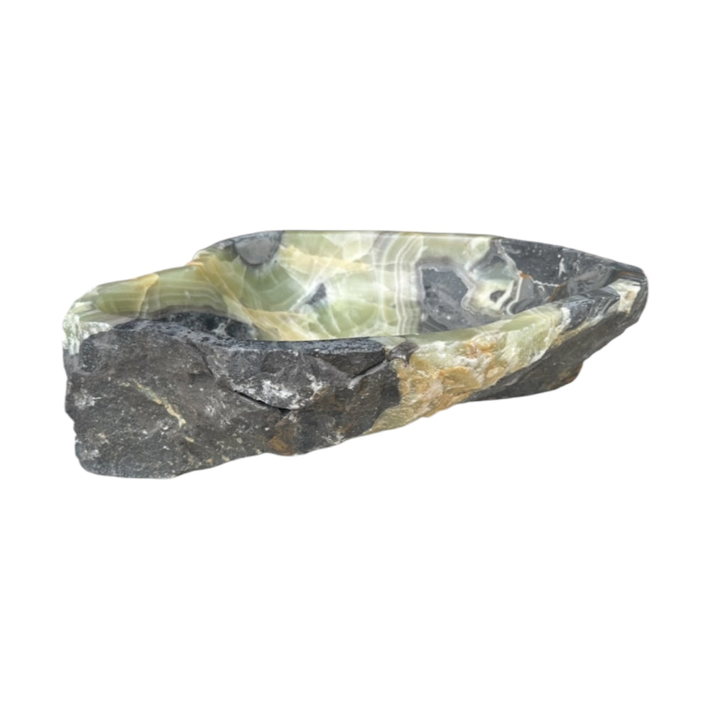 Este lavabo de vasija único está tallado a mano a partir de un único bloque sólido de ónix natural, con vetas dramáticas y texturas orgánicas irrepetibles. Cada superficie realza la belleza natural de la piedra, mientras que el interior está cuidadosamente moldeado para el uso diario.