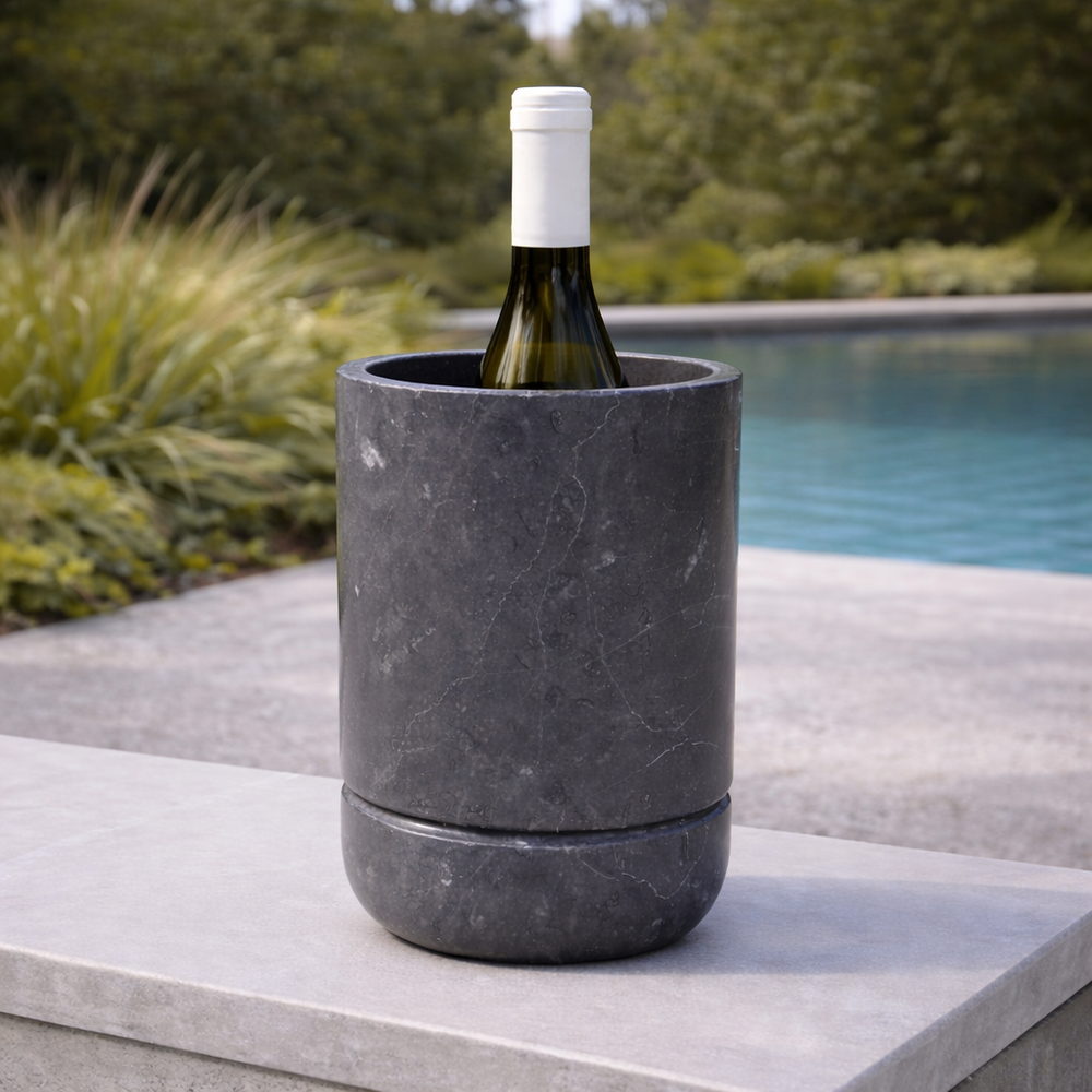Mantén tus vinos favoritos perfectamente refrigerados en nuestra vinoteca de piedra natural, tallada en una sola pieza de piedra maciza. Acabada a mano para realzar su veteado único y su pulido suave, cada pieza es verdaderamente única.