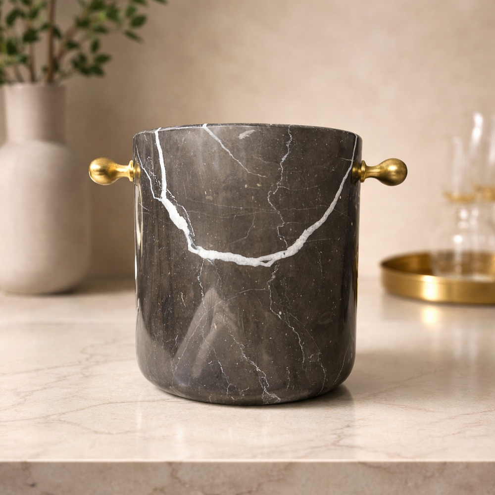Elevate your wine and champagne experience with this luxury handmade marble wine cooler, crafted from natural stone and finished with elegant brass handles. Designed to keep bottles cool while serving as a striking centerpiece, this wine cooler blends timeless materials with modern sophistication.