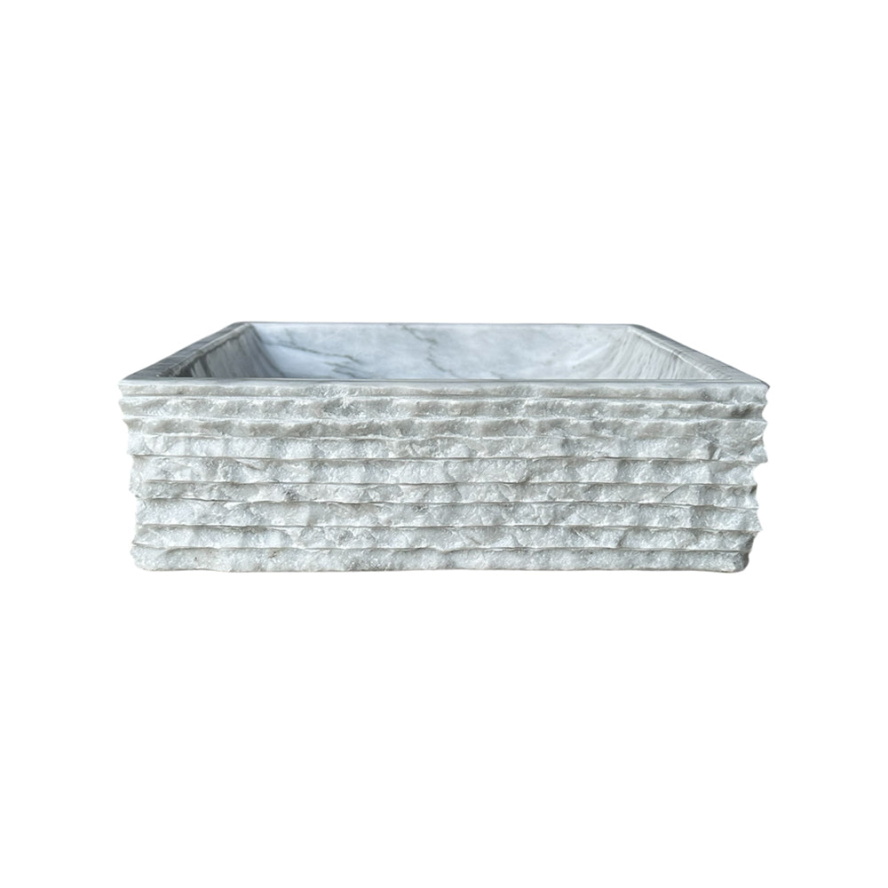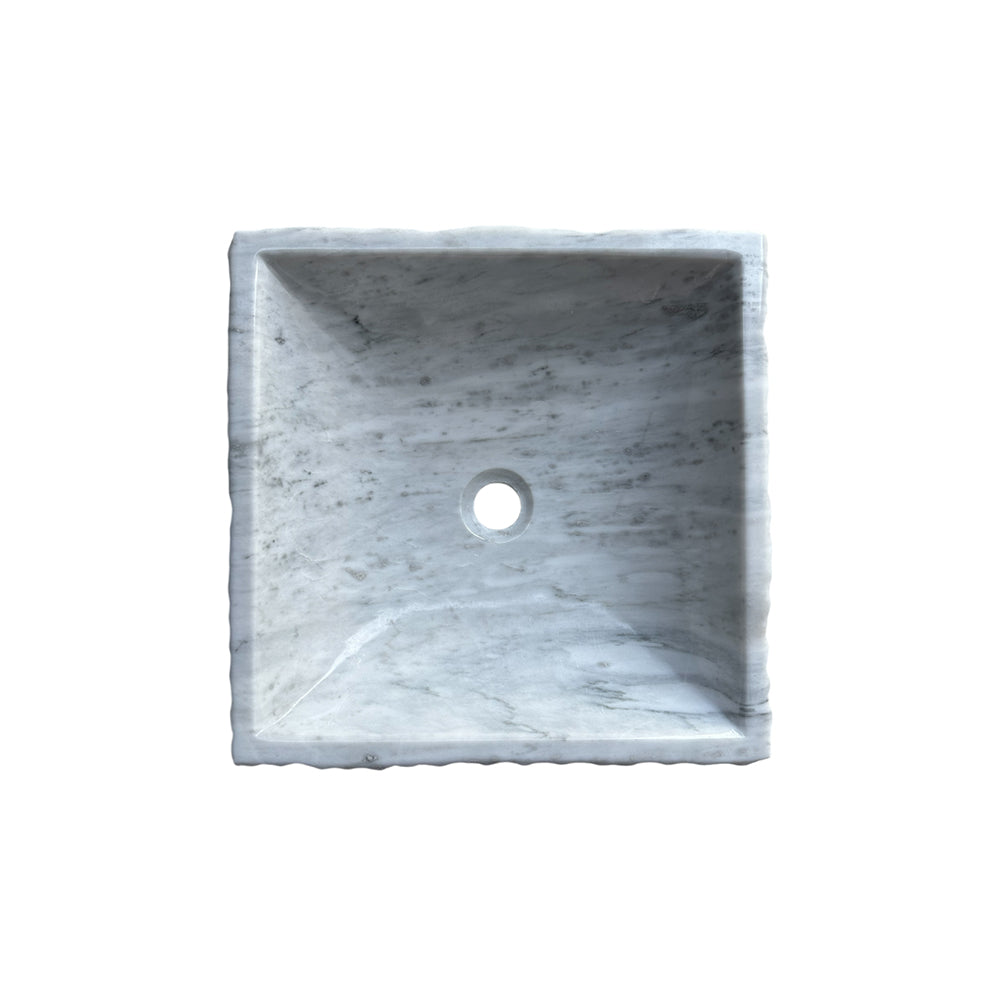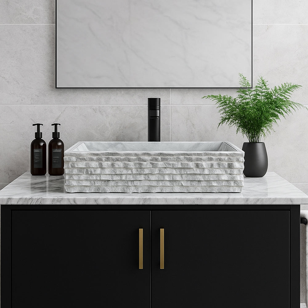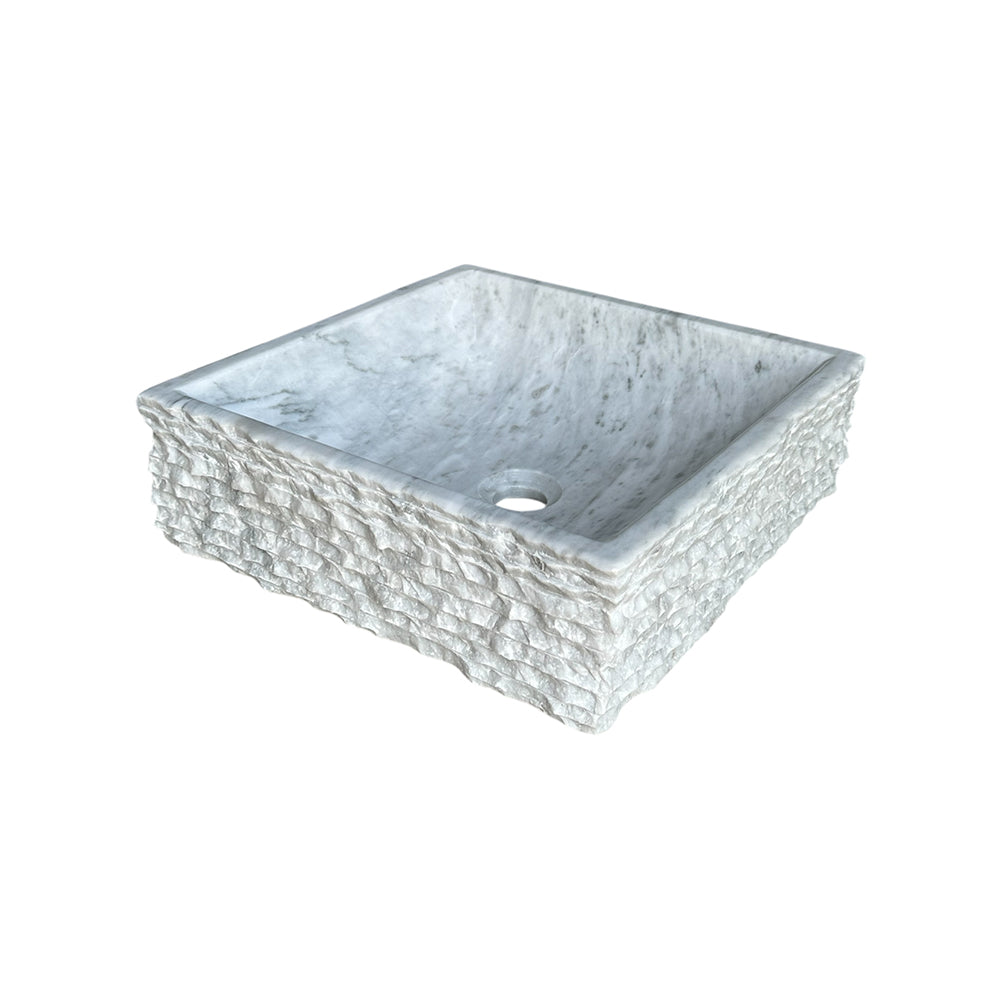Bring serenity and sophistication into your bathroom with this handcrafted white marble vessel sink. Expertly carved from natural stone, it features a smooth, polished interior contrasted by a rustic, textured exterior — a perfect balance of refinement and raw beauty.