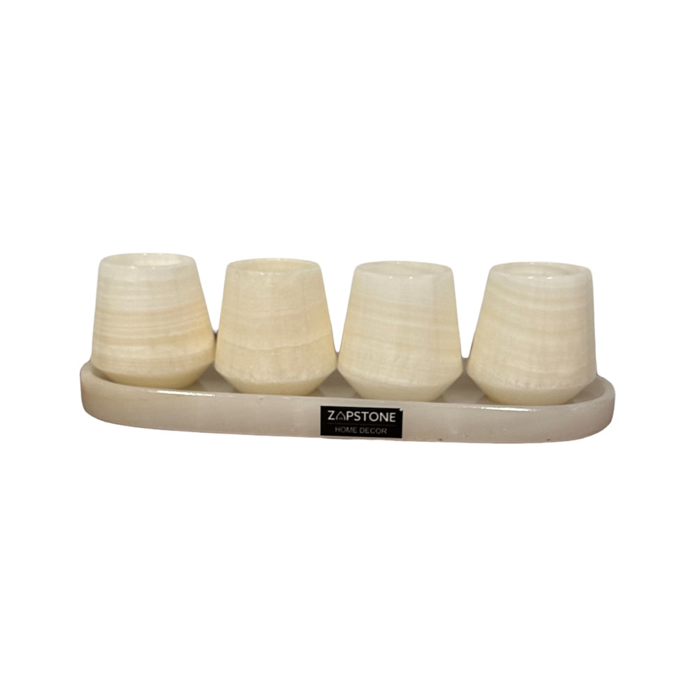 Serve in style with this handcrafted 4-piece marble mezcalero shot glass set, complete with a matching tray for an elevated presentation. Each shot glass is individually carved from natural marble, showcasing unique veining and color variations—no two pieces are exactly alike. Perfect for mezcal, tequila, or sipping spirits, this set brings artisanal charm and sophistication to any gathering or home bar.
